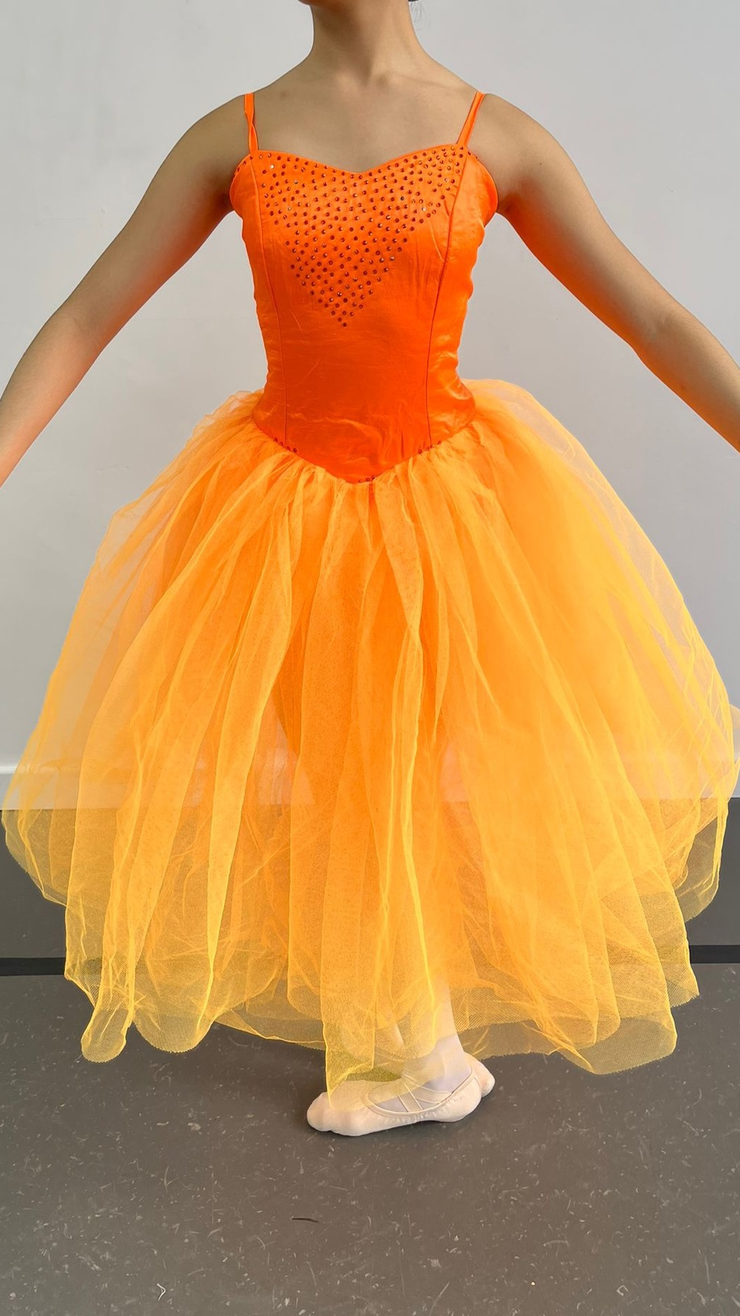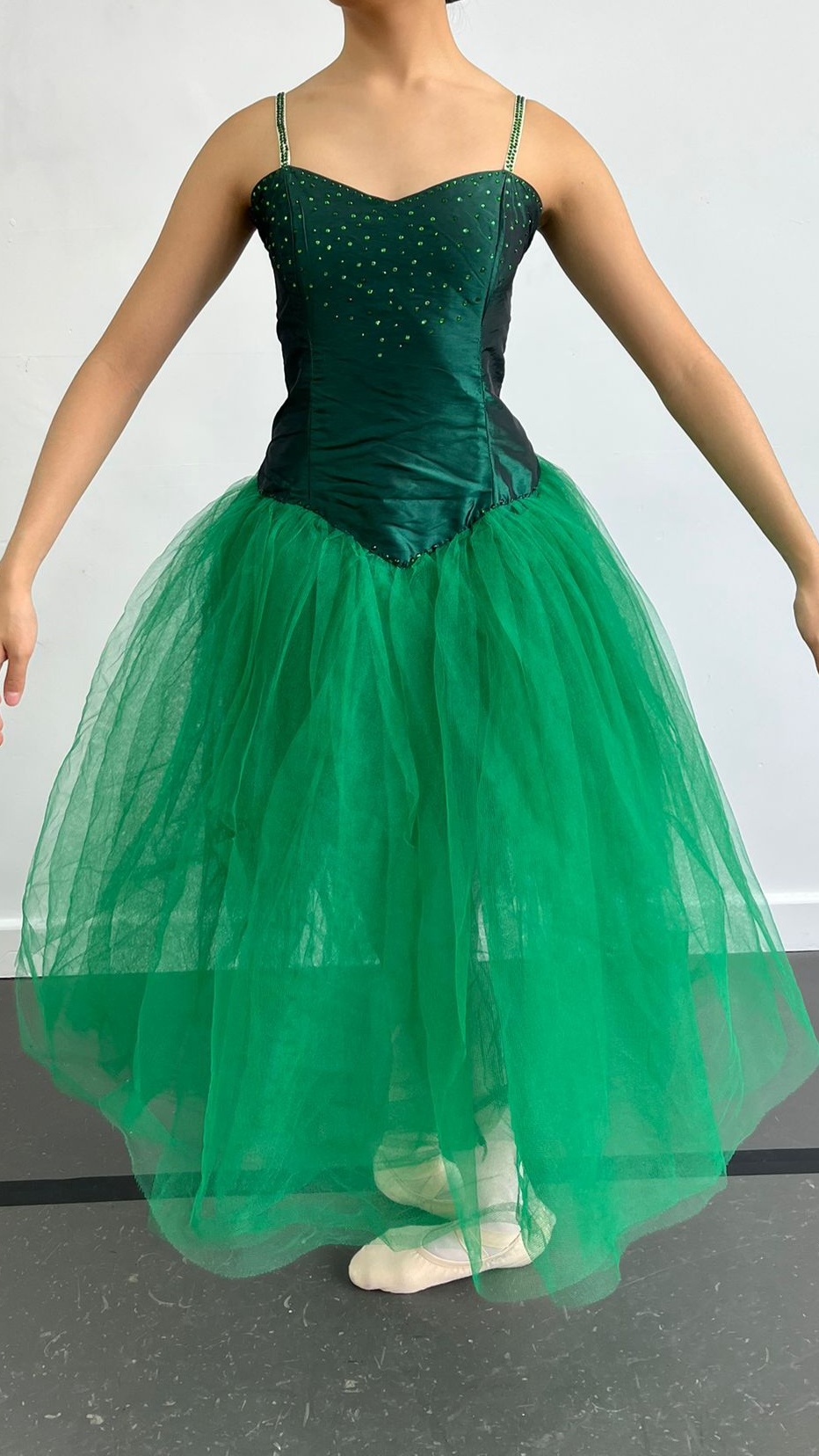 per weekAvailable in green and orange. Matching bow available if being characterised. Corset back romantic tutu with gemmed details. Custom made, approx age 12 (can be made smaller or bigger with corset). R5A