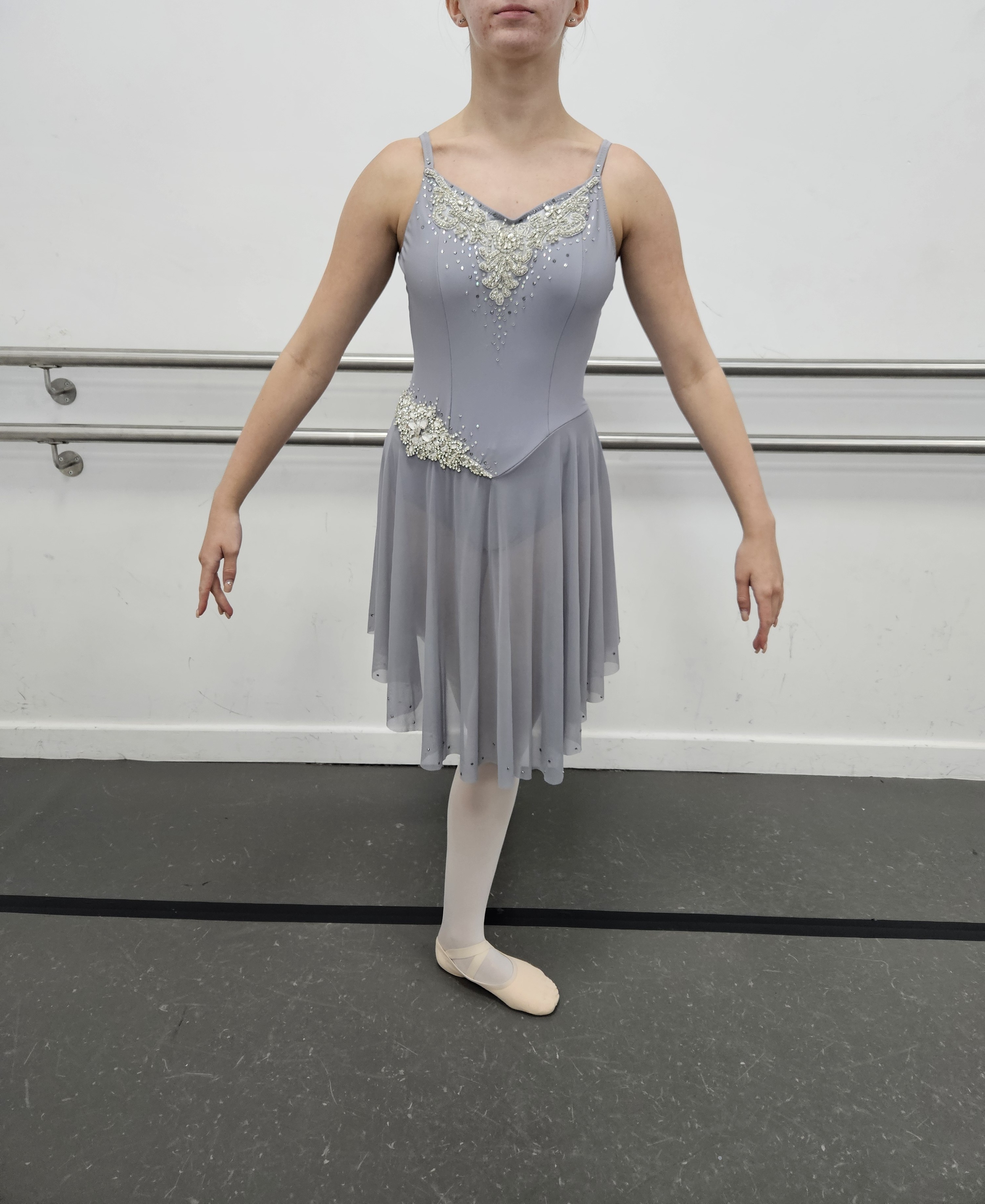 Black leotard with velvet and nude mesh details. Custom made, approx. age 15. R1A