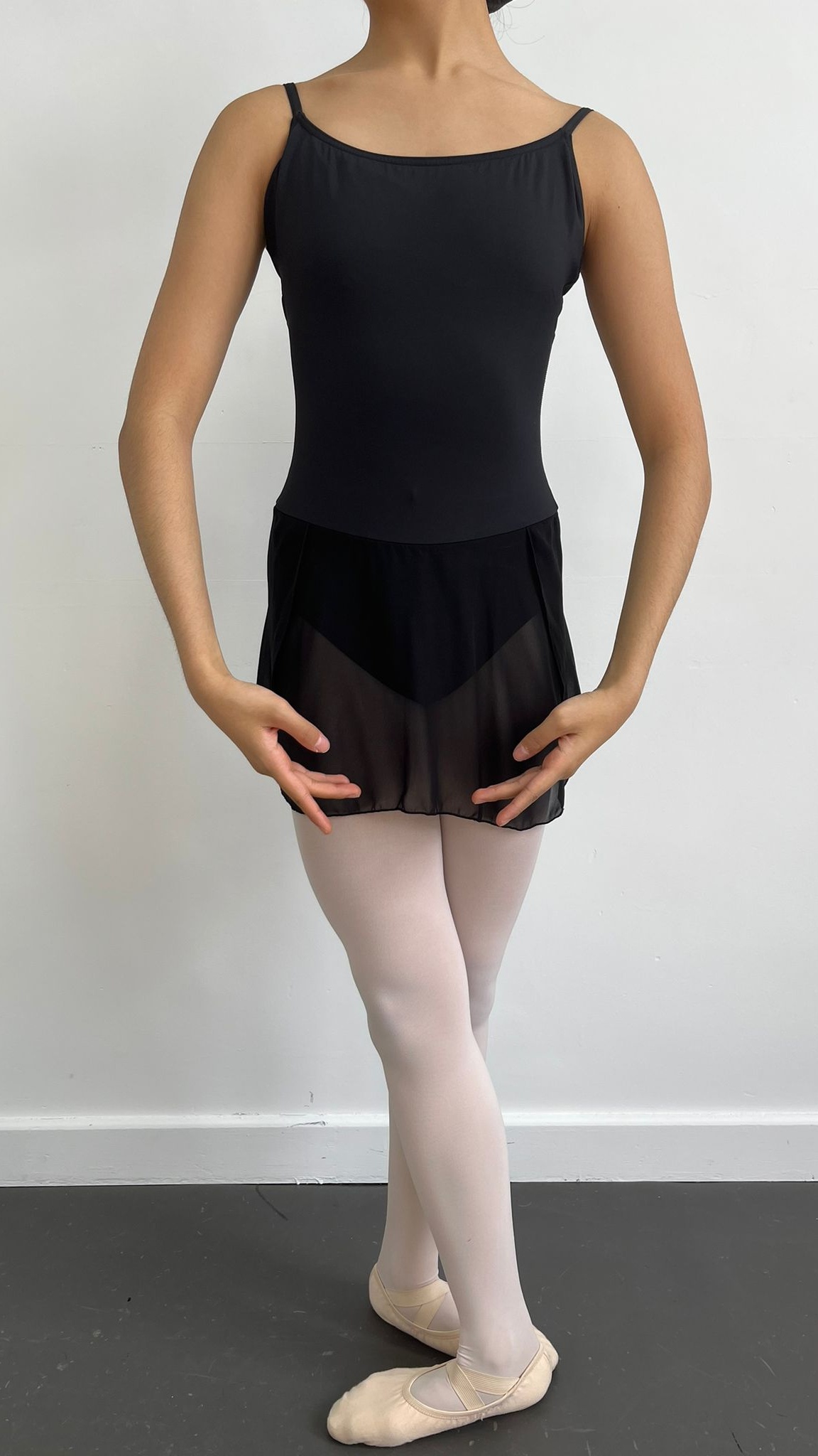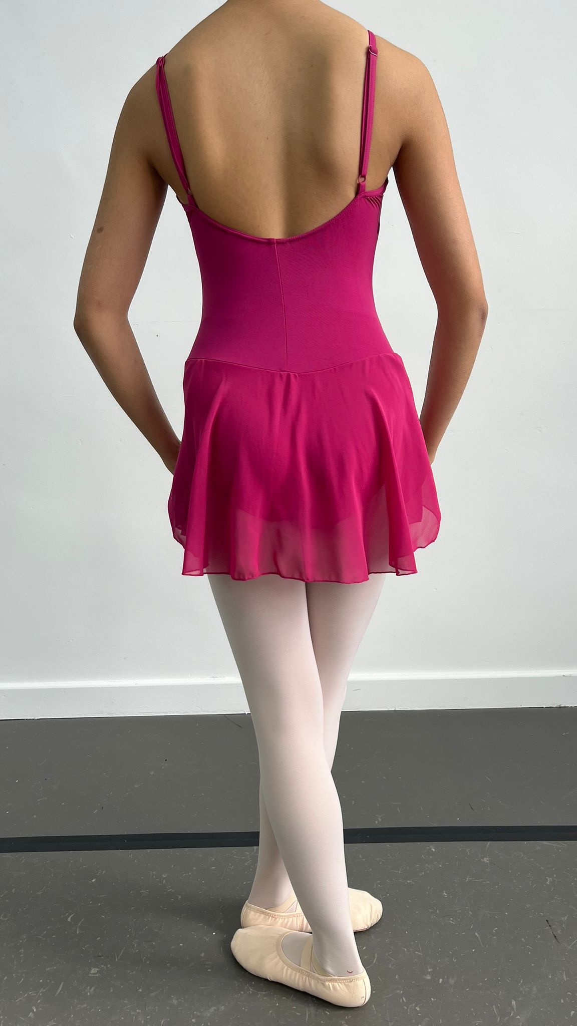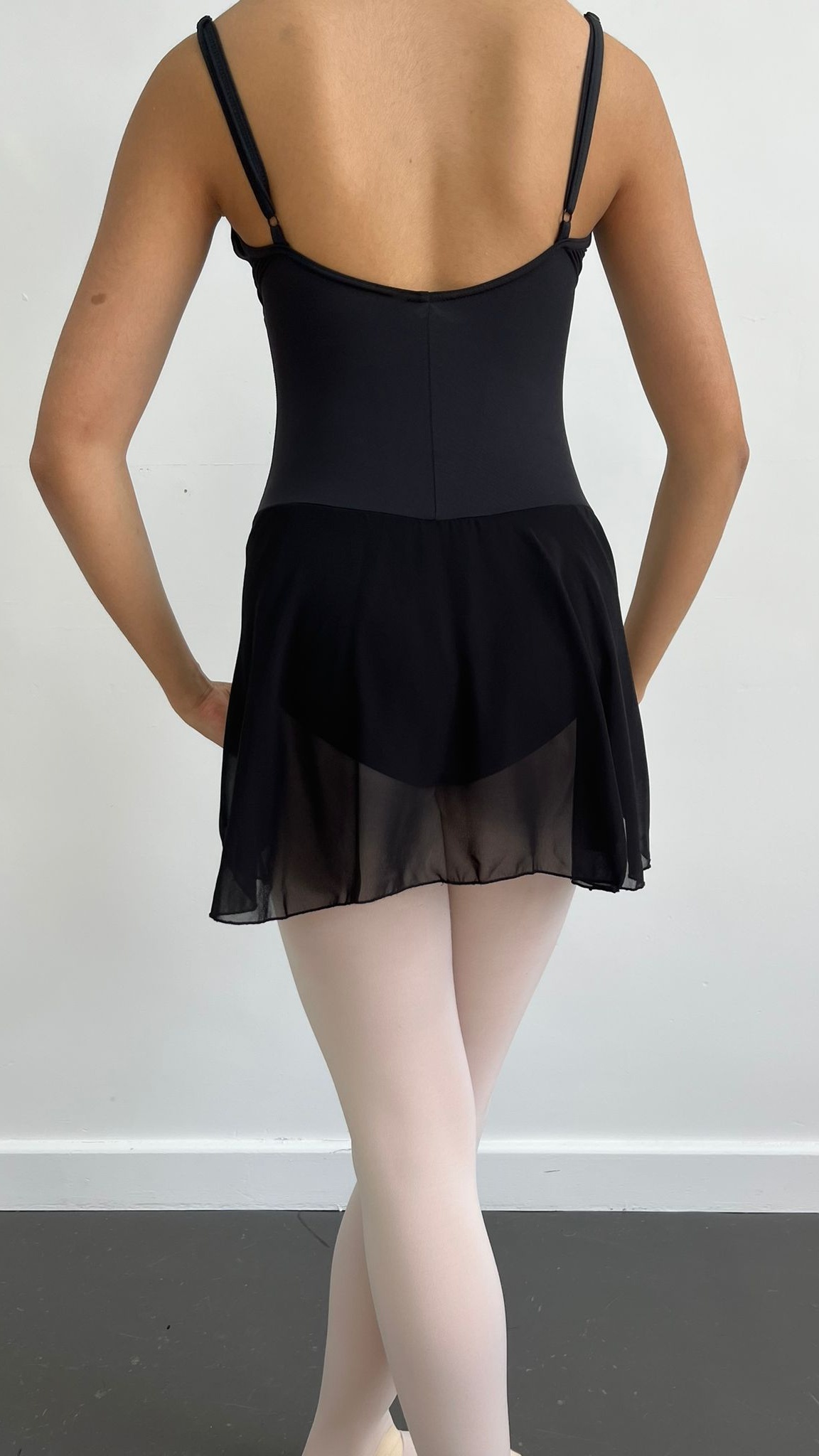 per weekBlack and pink skirted ballet dress with adjustable straps. Capezio sizing. Adult sizes but do fit children approx 10+. We do also have blue and white Plume versions that are very similar. R2B