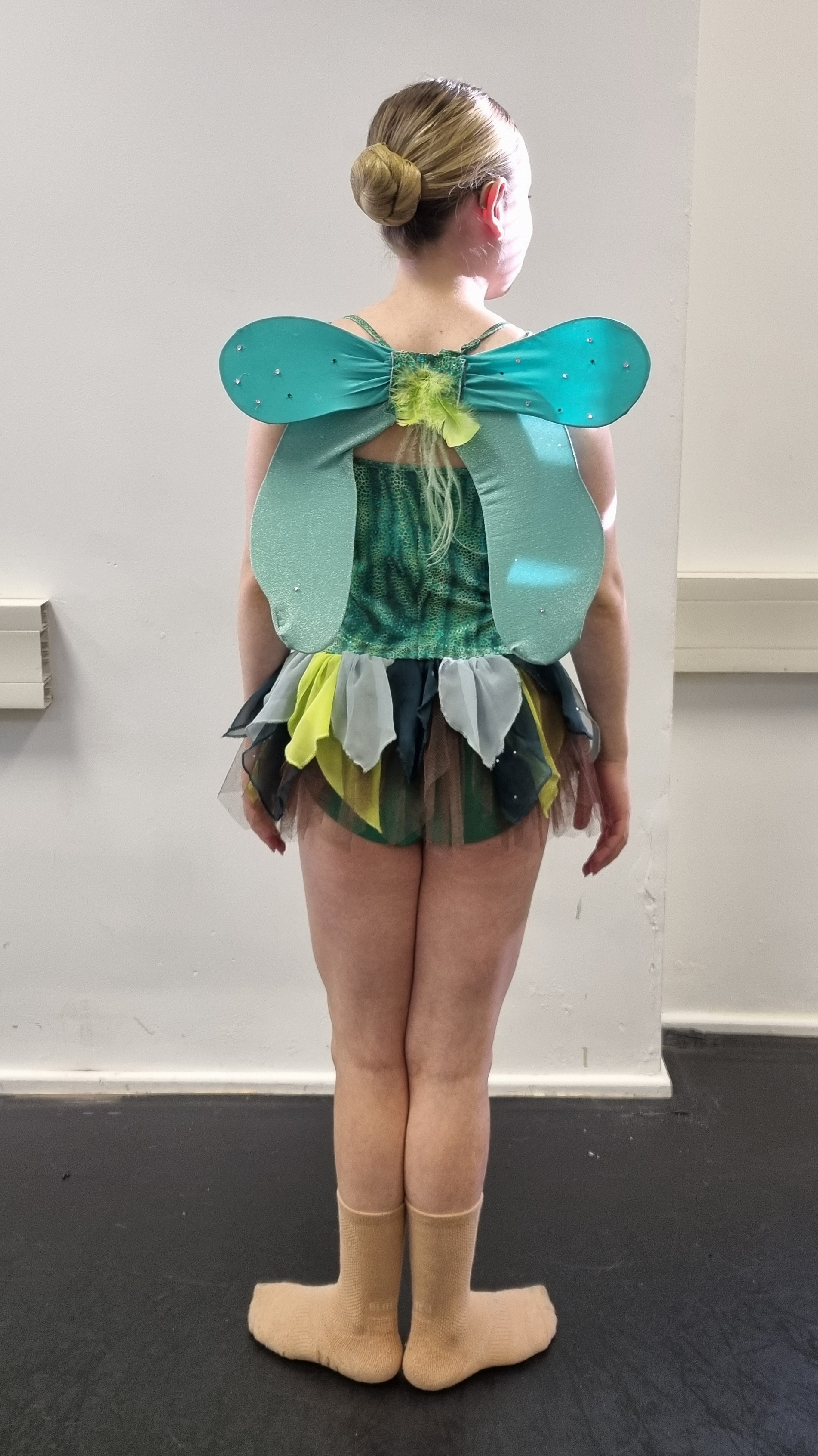 Green metallic dress with tulle skirt and matching wings. Custom made. R28B