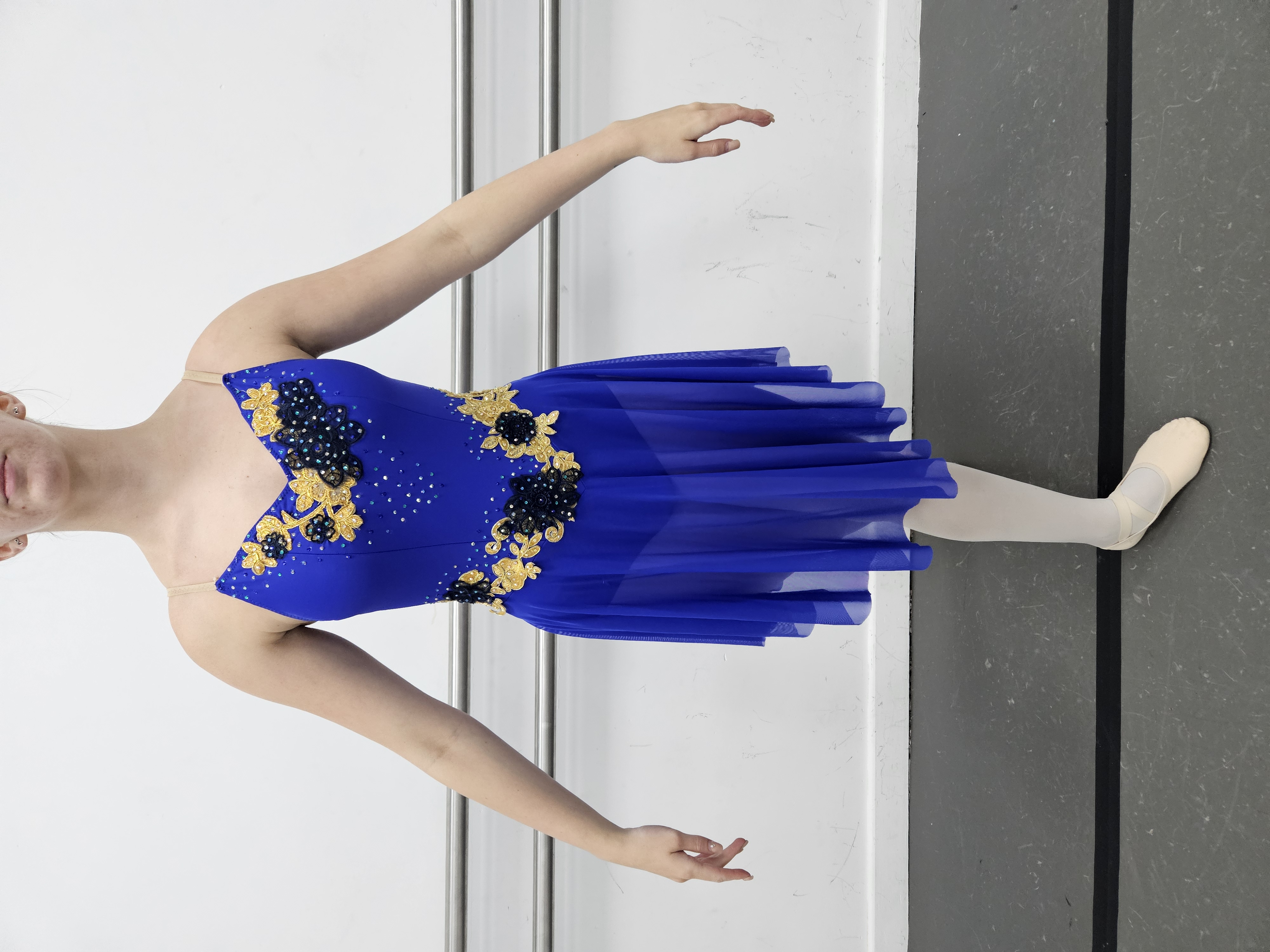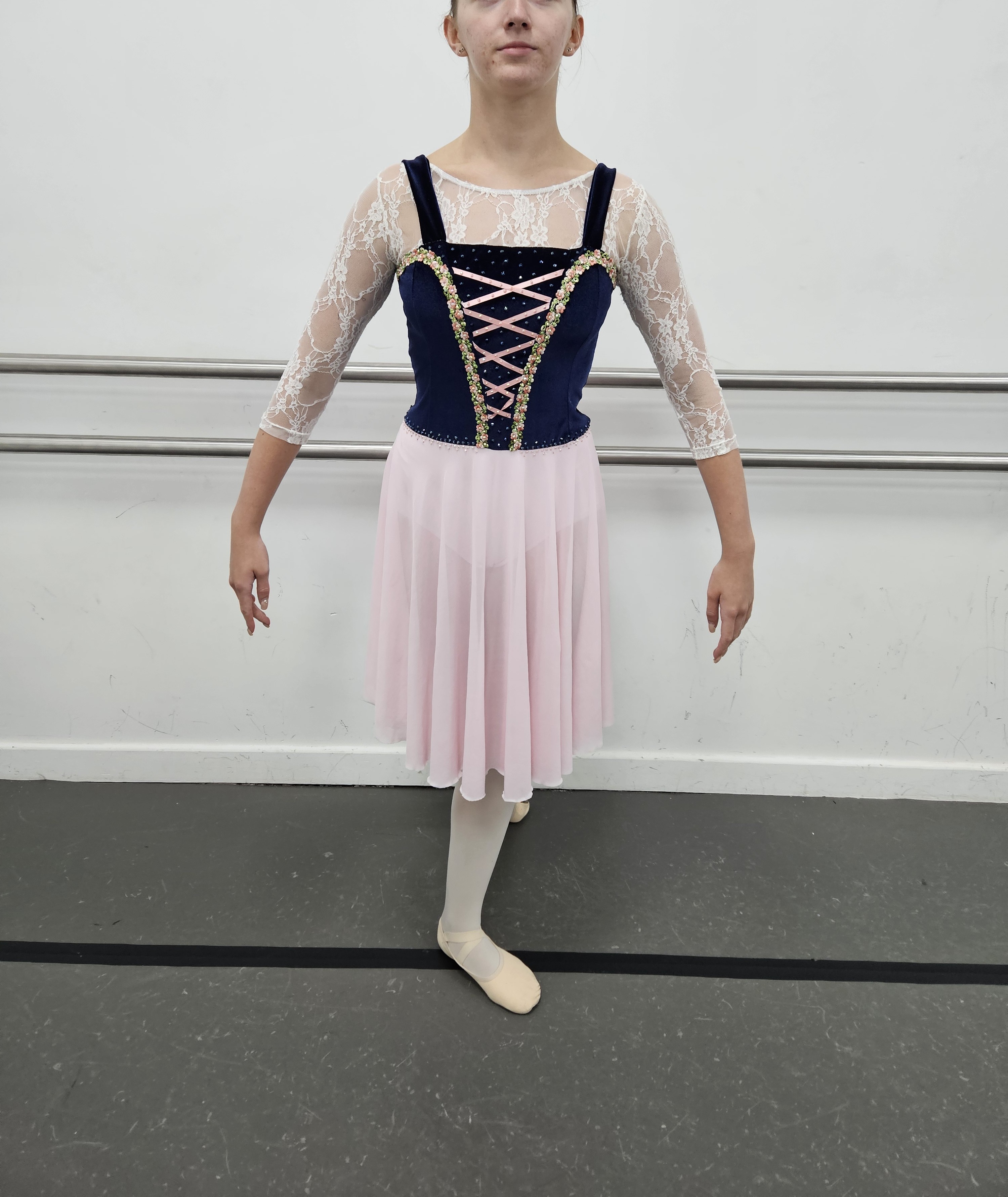 Long, navy circle skirt with elastic waist. Custom made. B41