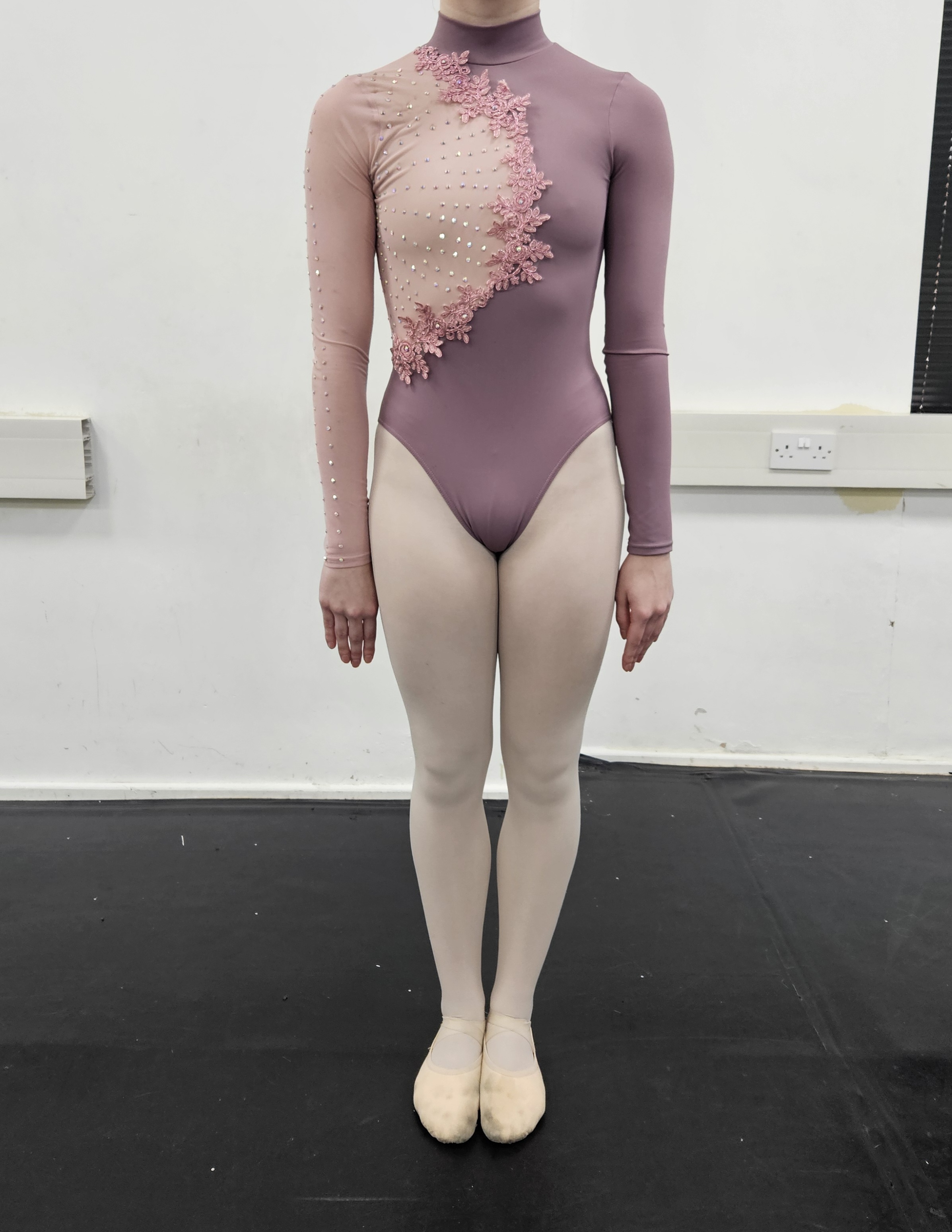 per weekNude catsuit with black paint marks and added gems. Custom made. R26A